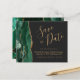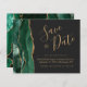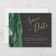 Med den här eleganten sparar du datumkortet och får en ny grönt vattenfärgen agate gräns som trimmas med faux guld glitter. Anpassadet kombinerar handskriftsskript för guld-färgad, sammanfogningsplåtar och kursivt typsnitt på en skiffersvart bakgrund. Den omvända sidan har en matchande framväxande grönt och guld agate-design.