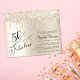 Elegant, chic och budgetvänlig 50:e födelsedagsfest inbjudan med "50 & Fabulous" skript i snyggt mot bakgrund av guld, med guld faux glitter neddroppning.