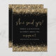 Ett ekonomiskt alternativ i BUDGET på en mindre storlek på 4,5 x 5,6 tum (110 lbs vikt), som är av samma tjocklek som ett vykort (är dock inte lämpligt för använda som vykort). OBSERVERA ATT DET FINNS EN PER lakan. Guld Glitter Black sa "ja Förlovning annons". Lite gnistra för att låta alla få veta dina spännande nyheter i klassiskt svart och guld! Elegant guld faux glitter konetti gräns ligger överst och grund och även på baksidan. Hon sa Ja och Förlovningen är i ett modernt handskriftsformat stil. Anpassa enkelt resten av texten till din egen.