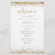 Guld Glitter Konfetti-Bröllopsprogram. Storlekt 5,5 x 8,5 tum på budgetnivå. Denna elegant har faux glitter guld gräns på vardera prisare. Välkomsthälsan finns i ett informellt handskript i stil och resten av ord kan du lätt anpassa.