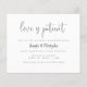 Oj! Oförutsedda omständigheter inträffar, och när de gör det kan du enkelt och på ett enkelt sätt informera dina gäster om att du måste skjuta upp datumet i bröllop med detta minimalistiska kort för uppskjutning av svartvita bröllop. Med "kärlek är patient" i chicens calligrafteckensnitt tillsammans med klassiskt serif-typografi. Som en del av budgetvalet här på Zazzle, är dessa inbjudningar inte komar med kuvert och passar inte heller in i ett kuvert av standardstorlek. Den närmaste storleka är A6, men det kommer att finnas en lucka på ungefär en halv tum. Om du inte har något emot att det saknas snus kan du använda så allmänt tillgängliga A6-kuvert. I annat fall kan denna design överföras till ett standardformat 5 x 7 (som levereras med kuvert) med hjälp av designöverföringen verktyg. Som en ungefärlig guide skulle 100 inbjudningar till budgeten (inklusive en volymrabatt) kosta cirka 39 dollar medan 100 standardbelopp på 5 x 7 inbjudan inklusive kuvert skulle kosta cirka 135 dollar. Ditt val kan variera beroende på Zazzles tillgängliga promokoder, försäljning på hela platsen eller prisförändringar.