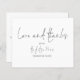 Kärlek och tack framtida fru Möhippa eller Hen Party. Ett budgetmässigt prist mindre än 4,5 x 5,6 tum alternativ. Finns i ett SEMI GLOSS 110 lb-kort LAGRAR, vilket är standardalternativet (rekommenderas för inbjudningar), ELLER SATIN AVSLUTAR 80 lb PAPPER LAGRAR (perfekt för bilagor). Kuvert är ett extra som tillval och är något större än det storleka kortet. Kärlek & Tack och Framtidsfru står i ett handskript för eleganten stil på framsidan och resten av texten på varje sida som du lätt kan anpassa med namn, och ditt tack. Om du ser det i svartvitt kan du ändra till valfri färg genom att anpassa ytterligare alternativ.