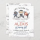 Få redo för ett åtgärdspaket för firande med vårt ninja-temade födelsedagsfest inbjudan. Den här dynamiska och budgeterade designen har en handmålad vattenfärgad illustration med tre små ninjor som träffar deras favoritkonst. Flytande på ett moln eller framväxande från ett rökstopp, satte dessa ninjor in steget för ett oförglömligt party. Den lekande "Låt oss Kick It!" ovanför dem kombinerar idén att hänga upp sig med ett tema för martialkonst, medan inbjudan nedan gör att alla ninjor går med i firande. Födelsepojkens namn går i centrum i brev, med fetstil, och sedan i roligt blå handskript. Händelseinformationen presenteras i enkel typografi, med ninja-stjärnor som kompletterar den viktiga informationen om datum och tid. Tecknadens moln är nära grund på kortet och lägger till en roligt i extra. När korten är vända avslöjas mönster av moln och ninja-stjärnvapen, och ninja-temat är färdigt. Den här lekande och energiska designen är underbar för yngre barn, från cirka 4 till 10 år gamla. Denna inbjudan är perfekt för att ange tonen för en födelsedagsfest som utlovar handling, äventyr och mycket roligt. Fånga dina gästers uppmärksamhet och gör din lilla ninjas speciella dag verkligt minnesvärd. Anpassa den här inbjudan för att spegla din party-information och låt festligheterna börja. Som en del av budgetvalet för Zazzle är lakan inte en vanlig storlek eller papper kvalitet för inbjudan. Om du vill ha den här designen på ett inbjudningskort kan du hitta den i vår butik eller använda på Zazzle Make Maskin för att överföra den till valfri produkt. Jag kan gärna meddela mig om jag har några frågor, men jag kan inte ändra en befintlig order. Bläddra i samlingslänken på den här sidan om du vill ha fler inbjudningar till pojkfödelsedagar.