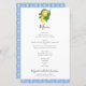 Den här eleganten är citruscitron och Medelhavsblått mönster som kan vara personlig med dina menyalternativ. **LÄS FÖRE KÖP** Våra stora budgetar mäter 5,5" x 8,5". Kardstammen är ljusvit med en halvblanka avsluta och en vikt på 110 lbs som lämpar sig för inbjudningar. Vi råder INTE dig att välja projektionsyta eller satäng pappert eftersom det är en mycket tunnare papper på 80 lb, vilket mer liknar journalsidor än kardstock. Om du gör ändringar i formen eller storlekt eller väljer en annan produkt och designen beskärs på något sätt eller inte ser höger ut på sidan måste du använda Live Design Service så att någon kan justera layouten åt dig, om du inte gör det bekvämt själv. Det finns ingen manuell kontroll eller åtgärd mellan att placera ordern och att skriva ut, så det du ser på skärm är vad som kommer att skrivas ut och skickas till dig. Med detta i åtanke bör du också trippelkontrollera om det finns stavfel eller felaktiga uppgifter innan du ställe din beställning.