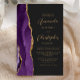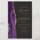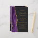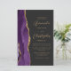 Den lämnat kant i eleganten i den moderna bröllopsinbjudan har en lila vattenfärgsagat gräns som trimmas med faux guld glitter. Anpassadet kombinerar skript av guld-färgad och sans serif typsnitt på en svart bakgrund. En matchande lila-agate-design visas på baksidan av kortet.