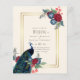 Vackra Peacock med kalk och blått, burgundblommor, sage grönt löv på hösten, hösten, vinterbröllopsartiklar. En del av en större samling som omfattar inbjudningar till budgetbröllop, spara datumen, RSVP-program, tack vare fotokort, möhippa- och bröllopsfest-presentationer och mycket annat. Om du vill ha en detaljerad kostnadsfri planering för vinterbröllop går du till weddingdesignchic.com.