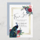 Vackra Peacock med kalk och blått, burgundblommor, sage grönt löv på hösten, hösten, vinterbröllopsartiklar. En del av en större samling som omfattar inbjudningar till budgetbröllop, spara datumen, RSVP-program, tack vare fotokort, möhippa- och bröllopsfest-presentationer och mycket annat. Om du vill ha en detaljerad kostnadsfri planering för vinterbröllop går du till weddingdesignchic.com.