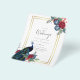 Vackra Peacock med kalk och blått, burgundblommor, sage grönt löv på hösten, hösten, vinterbröllopsartiklar. En del av en större samling som omfattar inbjudningar till budgetbröllop, spara datumen, RSVP-program, tack vare fotokort, möhippa- och bröllopsfest-presentationer och mycket annat. Om du vill ha en detaljerad kostnadsfri planering för vinterbröllop går du till weddingdesignchic.com.