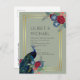 Vackra Peacock med kalk och blått, burgundblommor, sage grönt löv på hösten, hösten, vinterbröllopsartiklar. En del av en större samling som omfattar inbjudningar till budgetbröllop, spara datumen, RSVP-program, tack vare fotokort, möhippa- och bröllopsfest-presentationer och mycket annat. Om du vill ha en detaljerad kostnadsfri planering för vinterbröllop går du till weddingdesignchic.com.