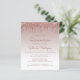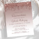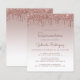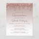 Trendiget quinceañera-inbjudan har en glatt bakgrund i ro guld faux glitter drip gräns och Mbre. Ord "Quinceañera" och hedersgästens namn visas i handskript för avslappnad mörk ro. Samma droppdesign ro guld glitter visas på baksidan.