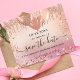 Ett giftigt och trendig Spara datumkortet för en Quinceañera, 15:e födelsedagsfesten. En rosa, övertoningsbakgrund för ro guld, dekorerad med faux glitter, gnistor och ballonger. Anpassa och lägg till datum och namn/ålder. Texten: Spara datumet skrivs med ett stort trendig-handskript i stil.