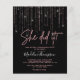 Design Funktion Moukling Glitter Curtain Ro Guld och Modern Elegant Script Typografi "Hon gjorde det!" med klassisk svart bakgrund