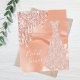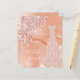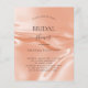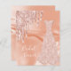Elegant, klassisk, glamorös och giftig stil inbjudningskort för möhippan. En klänning i ro guld med faux ro guld glitter dropp. Ro guld-satatin tittar bakgrund. Med texten: Möhippa på framsidan skriven med ett modernt skript för vit färgad, skrivet stil. Lägg till din händelseinformation på baksidan.