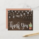 Budgetera Rustic String Ljus på Wood med Succulent Cactus Tack. Kort med festive strings of ljus och en söt krukpåse med succulents och cactus på en rustik träbakgrund. **Vårt papper i BUDGETEN är mindre, ljusare och känsligare, men ändå vackert! Glöm inte kuverten!** Kontakta oss på katescreationszazzle@gmail.com om du behöver hjälp eller matchande artiklar.