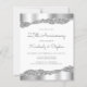 Trendigets 25:e bröllop-jubileumsinbjudan har en glatt silver-faux-folie och glitter överst och grund gräns på vit bakgrund. Ord "25-årsdagen" och parets första namn visas i handskriftsskriptet silver grått, med resten av anpassadet i sans serif font. Samma silver-folie och glitter gräns-design visas på baksidan.