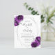 Den här elegantens moderna bröllopsinbjudan innehåller en silver-geometrisk ram som dekoreras med blommor från lila och silver på vit bakgrund. I anpassadet kombineras silver grått med fysisk handskrift, tryckplåt och kursivt typsnitt. Lägg till ytterligare information på baksidan tillsammans med en QR-kod som hjälper dina gäster att besöka webbplatsen för bröllop.
