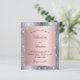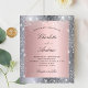 En modern inbjudan från elegant bröllop. Faux silver och rosa, metallisk tittar bakgrund dekorerad med faux glitter damm från silver. Anpassa och lägg till information om namn och bröllop. Svart färgad brev.