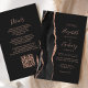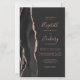 Den moderna bröllopsinbjudan från elegantens lämnat kant har en svart vattenfärgad agat gräns som trimmas med faux ro guld glitter. Anpassadet kombinerar handskrift, tryckplåt och kursivt typsnitt på mörk med grått-bakgrund för kol. Lägg till ytterligare information på baksidan tillsammans med en QR-kod som hjälper dina gäster att besöka webbplatsen för bröllop.