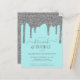 Budgeten Luxury Aqua Teal Blue Silver Gnistra Glitter Drips Brunch och Bubly Inbjudningskort för möhippan med faux glitter drops och klassy teal bakgrund. Perfekt för lyxhändelsen. Kontakta oss på cedarandstring@gmail.com om du behöver hjälp med designen eller matchande produkter.