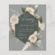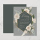 Budgetera vit ros och elegant guld, djupa gröntens bröllopsinbjudan.