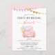 Budgetenhet efter Möhippa Vattenfärg för ett Vår bröllop-Inbjudningskort för möhippa på vit bakgrund - innehåller vacker manustypografi och elegant med ballonger och cute Care för speciella bruden att vara firande.