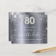 En elegant Spara datumkortet för en 80:e födelsedagsfest. En modern faux-metallisk tittar i silver, dekorerad med faux glitter stoft. Anpassa och lägg till datum och namn/ålder. Texten: Spara datumet skrivs med ett stort trendig-handskript i stil. Nummer 80 med ett stil-teckensnitt med ballong.