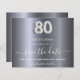 En elegant Spara datumkortet i 80 födelsedagsfester. En modern faux-metalliskt tittar bakgrund i silver. Anpassa och lägg till datum och namn/ålder. Texten: Spara datumet skrivs med ett stort trendig-handskript i stil. Nummer 80 med ett stil-teckensnitt med ballong.
