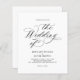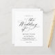 Den här bröllopsinbjudan har en elegant och minimalistisk design, med klassisk svart kalligrafi och serif typsnitt på vit bakgrund.