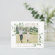 Save The Date! Meddela din bröllop till vänner och familj med den här roliga men moderna vita med eukalyptus löv, spara datumkorten med hjälp av modern fototeknik. Dessa inbjudningskort för budgetbröllop har ett kuvertalternativ. Anpassa med ditt favoritfoto för förlovning och anpassa med namn, datum och plats för bröllop. Dessa unika botaniska gröna sparor i bröllop kommer att göra ett bestående intryck, era gäster kommer att se till att spara datumet! COPYRIGHT © 2020 Judy Burrows, Black Hund Art - Med alla Höger reserverade. Budgetens eukalyptus Greenery Photo Save Date