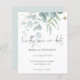 Budgetens eukalyptus Powder Blue Guld sparar datumet. Ett budgetmässigt prist mindre än 4,5 x 5,6 tum alternativ. Finns i ett SEMI GLOSS 110 lb-kort LAGRAR, vilket är standardalternativet (tjockare för inbjudningar), ELLER SATIN AVSLUTAR 80 lb PAPPER LAGRAR (perfekt för bilagor). Kuvert är ett extra som tillval och är något större än det storleka kortet. Modern elegans till inbjudan dina gäster för att spara ditt datum, med delikat eukalyptus löv i pulverblått och guld som gränsar till toppen och som gradvis blir mer tonad mot mitten med typografens överkant överlagd. Vänligt Spara Vårt datum finns i ett modernt skript och resten av texten kan du enkelt anpassa.