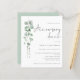 Budget Eucalyptus Skriptårsdag - middagsinbjudan. Ett budgetmässigt prist mindre än 4,5 x 5,6 tum alternativ. Finns i ett SEMI GLOSS 110 lb-kort LAGRAR, vilket är standardalternativet (rekommenderas för inbjudningar), ELLER SATIN AVSLUTAR 80 lb PAPPER LAGRAR (perfekt för bilagor). Minimalistiskt botaniskt stil, med vattenfärgsgrön som flyter ner på den lämnat sidan och text till högerna. Ett handskrivet skript för årsdag och resten av texten som du lätt kan anpassa.