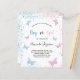 För en gender, visa babyduschen. En vit chic bakgrund. Anordnas med rosa och blå fjärilar och glitter-damm Personaliserar och lägg till namn i mamma till att vara och party. Namn och texten: Boy eller Girl är skriven med ett handskript i stil