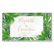 Den moderna magneten handflatan i den tropiska tropiska löv i bröllop spara datum med geometrisk grönt och guld och ett typsnitt i eleganten för namn är ett budgetvänligt mönster-meddelande till ett överkomligt pris, perfekt keepsaké eller gästtjänst för ett ömålbröllop.