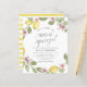 Hon har hittat sin huvudsakliga klämma! Ett modernt citrustemat inbjudningskort för möhippan med "huvudsaklig klämning" i penselns kalligrafi, som är inramad av en vattenfärgad andedräkt av frukt och blommor. Baksidan har hand-målad vattenfärg rand i gult. Som en del av budgetvalet här på Zazzle, är dessa inbjudningar inte komar med kuvert och passar inte heller in i ett kuvert av standardstorlek. Den närmaste storleka är A6, men det kommer att finnas en lucka på ungefär en halv tum. Om du inte har något emot att det saknas snus kan du använda så allmänt tillgängliga A6-kuvert. I annat fall kan denna design överföras till ett standardformat 5 x 7 (som levereras med kuvert) med hjälp av designöverföringen verktyg. Som en ungefärlig vägledning skulle 100 inbjudningar till budgeten (inklusive en volymrabatt) kosta cirka 39 USD medan 100 standardinbjudningskort på 5 x 7 inklusive kuvert skulle kosta cirka 135 USD. Ditt val kan variera beroende på Zazzles tillgängliga promokoder, försäljning på hela platsen eller prisförändringar.
