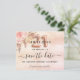 Ett girigt och trendig Spara datum för en 21-årsdag party. En rosa, ro guld-gradientbakgrund som dekoreras med blommigtar för rosa och pampasgräs. Anpassa och lägg till datum och namn/ålder. Texten: Spara datumet skrivs med ett stort trendig-handskript i stil. Nummer 21 skrivs med ett skript för ballong stil.