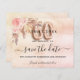 Ett giftigt och trendig Spara datum för en 60:e födelsedagsfest. En rosa, ro guld-gradientbakgrund som dekoreras med blommigtar för rosa och pampasgräs. Anpassa och lägg till datum och namn/ålder. Texten: Spara datumet skrivs med ett stort trendig-handskript i stil. Nummer 60 skrivs med ett skript för ballong stil.