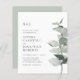 Budgetera allt i en inbjudan till ett botaniskt seminarium om eukalyptus... Vår botaniska bröllopsinbjudan "All in One" till ett rimligt pris har en elegant vattenfärgen eukalyptus gren i skuggor och dammig grönt som släcker inbjudningstexten bredvid den. Ljussidan på inbjudan innehåller all information som du normalt skulle se på separata kort i bröllop-paketet. Den här moderna bröllopsinbjudan från stil fram och tillbaka var designad för att vara både elegants- och budgetmedveten.. för att inte tala om tidsbesparing. På baksidan finns det också en QR-kodgrafikmall som du kan ersätta med din egen kod (eller ta bort om du inte tänker använda använda ett). All exempeltext kan enkelt revideras med egen information om anpassningsmallen. Allt detta i en budgetdesign finns också på ett traditionellt 5x7-bröllopsinbjudningskort.