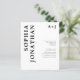 Budgetera alla i ett med detaljer Modern Dold Typography Black on White Trendig Monogram bröllopsinbjudning ... Vår prisvärda "All in One"-svart på vit bröllopsinbjudan innehåller fet svart serif-typografi i kombination med sans serif-text för en enkel och trendig-bröllopsinbjudan med monogrammet. BACK för inbjudan innehåller alla de DETAILS som du normalt skulle se på separata kort i bröllop-paketet, inklusive mottagningstid och plats, logialternativ, bröllop webbplats, OSA- och registerinformation. Den här moderna bröllopsinbjudan från stil var designad för att vara både trendig- och budgetmedveten.. för att inte nämna tidsbesparing. All exempeltext kan enkelt revideras med egen information om anpassningsmallen. Observera att du har möjlighet att köpa kuvert med dina inbjudningar eller skaffa egna, om du har en föredragen papper produktleverantör.