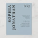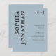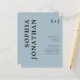 Budgetera allt i en med detaljer Modern fetstil, svart, onyx-typografi på ljusblå monogram-bröllopsinbjudan till det blå Trendiget... Vår prisvärda "All in One"-svart på lätt, dammig, blå bröllopsinbjudan innehåller fet onyx svart serif-typografi i kombination med sans serif-text för en enkel och trendig mongrammad bröllopsinbjudan. Baksidan av inbjudan innehåller alla de uppgifter som du normalt skulle se på separata kort i bröllop-paketet, inklusive mottagningstid och plats, logialternativ, bröllop webbplats, OSA- och registerinformation. Den här moderna bröllopsinbjudan från stil var designad för att vara både trendig- och budgetmedveten.. för att inte nämna tidsbesparing. All exempeltext kan enkelt revideras med egen information om anpassningsmallen. Observera att du har möjlighet att köpa kuvert med dina inbjudningar eller skaffa egna, om du har en föredragen papper produktleverantör.