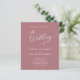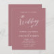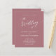 Budgetera allt i en Elegant-kallgrafi Trendiget Dusty Ro bröllopsinbjudan med information om bak... Vår unika, prisvärda "Allt-i-ett"-inbjudan till typografi ger ett vitt kalligrafiskt skript i kombination med serif-text på en trendig dammig ro-bakgrund. BACK för inbjudan innehåller alla de DETAILS som du normalt skulle se på separata kort i bröllop-paketet, inklusive mottagningstid och plats, logialternativ, bröllop webbplats, OSA- och presentregisterinformation. Den här moderna bröllopsinbjudan från stil var designad för att vara både elegant- och budgetmedveten.. för att inte nämna tidsbesparing. På baksidan finns det också en QR-kodgrafikmall som du kan ersätta med din egen kod (eller ta bort om du inte tänker använda använda ett). All exempeltext (bortsett från den grafiska kalligrafin inslag) kan enkelt ändras med egna uppgifter om anpassningsmallen.