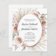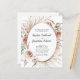 Budgetera allt i en Boho Rosa Blommigt Ro Guld Oval Torkad Handflatan Lämnar Bröllbjudan... Vår bröllopsinbjudan "Allt i ett"-blommigt har en arrangemang av vackert rosa ros, eukalyptus och torkat handflatan löv runt en faux ro-guld-metallfolie av ram som skapar en elegant gräns för inbjudningstexten i. Baksidan av inbjudan innehåller all information som du normalt skulle se på separata kort i bröllop-paketet. Den här moderna bröllopsinbjudan i stil var designad för att vara både elegants- och budgetmedveten.. för att inte tala om tidsbesparing. På baksidan finns det också en QR-kodgrafikmall som du kan ersätta med din egen kod (eller ta bort om du inte tänker använda använda ett). All exempeltext kan enkelt revideras med egen information om anpassningsmallen.