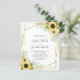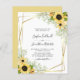 Budgetera allt i en solrosblomma, Guld, Ram bröllopsinbjudan... Vår prisvärda "Allt-i-ett"-blommigt och inbjudan till gigantiskt bröllop har en guld-geometrisk ram som är förskönad med buketter av ljusa gulter solblommor och delikat grönt-löv som gränsar till din personlig bröllopstext. Baksidan av inbjudan innehåller all information som du normalt ser på separata kort i bröllop-paketet. Den här moderna bröllopsinbjudan från stil var designad för att vara både elegant- och budgetmedveten.. för att inte nämna tidsbesparing. På baksidan finns det också en QR-kodgrafikmall som du kan ersätta med din egen kod (eller ta bort om du inte tänker använda använda ett). All exempeltext kan enkelt revideras med egen information om anpassningsmallen.