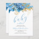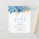 Den här söta babyduschinbjudan har en övre gräns av blommor och löv från blått och guld. Nedan visas ord "baby in bloom" i handskriftsskript i elegant. Anpassa texten med namn i det blå skript som ska användas mamma och detaljerna i grått sans serif-teckensnitt på vit bakgrund.