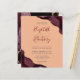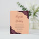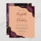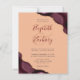 En burgundröd vattenfärgsagatdesign som trimmas med faux guld glitter visas i två hörn av denna elegant. Anpassa den med parets namn i burgundsskript över ett stort ampersand. Lägg till uppgifterna om bröllop i grått-kolsbrickan och kursivt typsnitt på persikobakgrunden. Den bakomliggande sidan har en matchande burgundi och guld-agate-design.