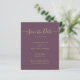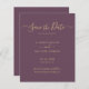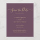 Eleganten av budgeten manar till modern minimalistisk icke-fotoförbättring och personlig för guld bröllop spara datum-annonsering till ett rimligt pris för lågbudgetflygare. En ren designmall har en kursiv elegant som skriver typografiktexten "Spara datum" i guld på lila av mauve eller dammig plommon i färg. ***NOTERA! *** BUDGETEN PAPPER/FLYER ÄR PAPPER. ENVELOPES INKLUDERADE.** UPPGRADERA PAPPRA FÖR EN TEKER-PAPPER. *** Traditionell kartstock med kuvert: https://www.zazzle.com/elegant_script_minimalist_mauve_and_gold_wedding_save_the_date-256887136912150444 Den här klassiska kortets perfekt för ett par som vill spara datumet med en modern beröring, utan foto. Kontakta designern om du behöver hjälp eller matchande artiklar.