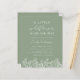 Fira att det kommer en ny mängd glädje med en vacker liten blomma på det sätt som barnet duschar. Gå med oss för en eftermiddag fylld med kärlek och lycka när vi hedrar de blivande föräldrarna. Inbjudan innehåller en fantastisk bakgrund av oliver eller sage-grönt, som accentueras av en mängd levande vilda blommor.