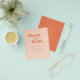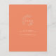 En bröllopsinbjudan med typografi för återsändande av orange är en snyggt och ett unikt val för ett särskilt tillfälle. Den djärva, ljusa orangen brev står ut mot den ljuspersikobakgrunden och skapar en slående visuell kontrast. Inbjudan förbättras ytterligare genom att man lägger till sol och blommans designdetaljer, vilket ger en aning av stollig och spelbarhet till den övergripande designen. Sol och blommor tillför inbjudan en munter och glad vibb, skapar den perfekt för en roligt och ett minnesvärt bröllop firande.
