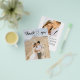 Skicka ett mycket speciellt tack till alla som delade din speciella bröllopsdag med dig. Redigera enkelt namn och fotot på framsidan. Förutom ett andra foto och ett personligt tack så skickar du ett meddelande på baksidan. Era gäster kommer inte bara att läsa ert rörande tackkort i kärlek, utan de kommer också att se två speciella foton från bröllop! Ändra färg i ordalydelsen "Tack" och det rosa hjärtat genom att klicka på "Klicka för att anpassa ytterligare". Se hela vår Bröllop-tackkortssamling för fler alternativ!