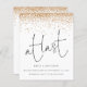 Ett ekonomiskt alternativ i BUDGET på en mindre storlek på 4,5 x 5,6 tum (110 lbs vikt), som är av samma tjocklek som ett vykort (är dock inte lämpligt för använda som vykort). OBSERVERA ATT DET FINNS EN inbjudan per lakan. Budgetera glitter-konfetti Guld i förra Förlovningen. En snyggt ställer in typografi i svart för att till sist komplettera resten av texten som du lätt kan anpassa, med en gräns av faux glitter konetti överst på båda sidor.