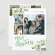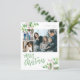 Modern snyggt God jul grönt handskriven kalligrafi-skript 6 familjefollning med enkelt kort för vit helgdag till överkomligt pris med anpassningsbar personlig på båda sidor med vattenfärg botaniskt grönt och heliga bär.